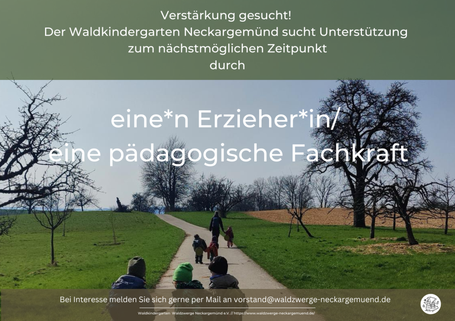 in Neckargemünd ist groß. Als Ergänzung zum bereits bestehenden Angebot versteht sich der Waldkindergarten, dessen Einrichtung auf die Initiative von Eltern aus Neckargemünd zurückgeht. Als Standort ist Neckargemünd ideal, weil der Ort von Wald umgeben ist und die Anfahrtswege zum Kindergartentreffpunkt kurz sind.